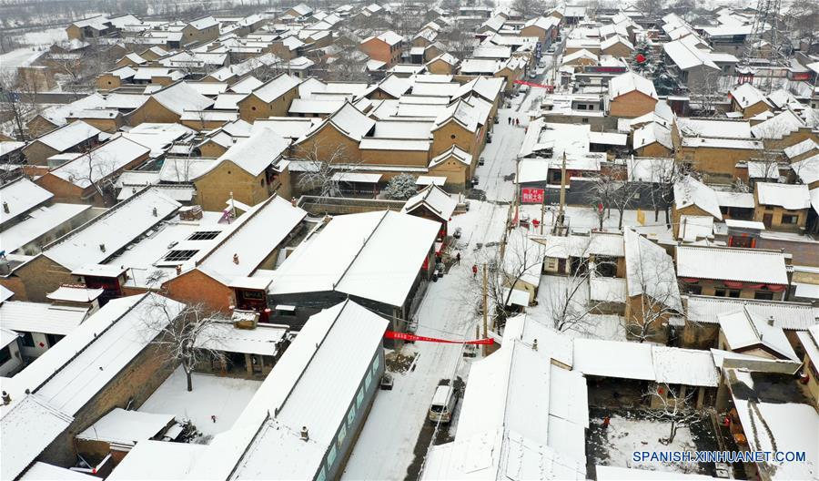 SHANXI, febrero 10, 2019 (Xinhua) -- Vista del paisaje nevado de una villa en el condado de Xiangfen en la ciudad de Linfen, en la provincia de Shanxi, en el norte de China, el 10 de febrero de 2019. Una nevada afectó muchas regiones en la parte sur de la provincia desde el sábado. (Xinhua/Li Xianjun)
