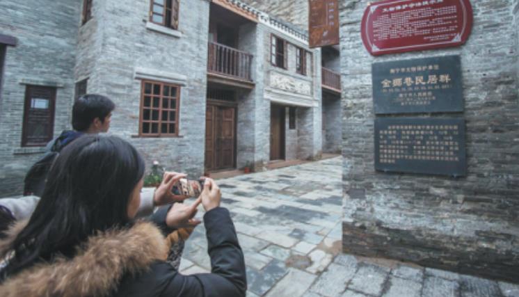 Los visitantes hacen fotos en el distrito histórico de Nanning, Región Autónoma Zhuang de Guangxi. [Foto por Chen Guanyan / China News Service]