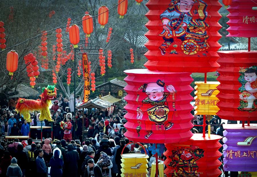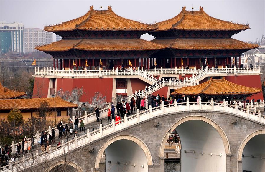 HENAN, febrero 11, 2019 (Xinhua) -- Imagen del 7 de febrero de 2019 de turistas visitando el Parque de la Ciudad del Milenio, un sitio turístico en Kaifeng, en la provincia de Henan, en el centro de China. Más de 32 millones de turistas visitaron la provincia de Henan, durante las vacaciones por la Fiesta de Primavera, de una semana de duración, generando más de 18 billones de yuanes (aproximadamente 2.7 millones de dólares estadounidenses) de ingreso, de acuerdo con las autoridades locales. (Xinhua/Li An)
