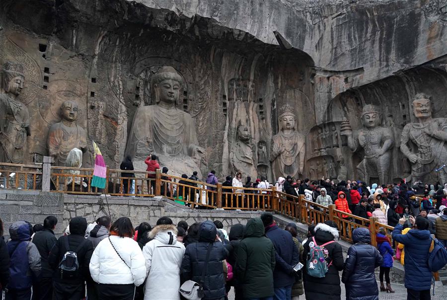 HENAN, febrero 11, 2019 (Xinhua) -- Imagen del 8 de febrero de 2019 de turistas visitando las Grutas de Longmen, un sitio turístico en Luoyang, en la provincia de Henan, en el centro de China. Más de 32 millones de turistas visitaron la provincia de Henan, durante las vacaciones por la Fiesta de Primavera, de una semana de duración, generando más de 18 billones de yuanes (aproximadamente 2.7 millones de dólares estadounidenses) de ingreso, de acuerdo con las autoridades locales. (Xinhua/Li An)