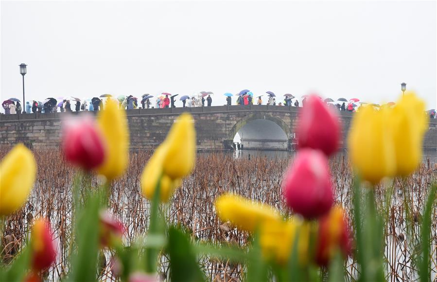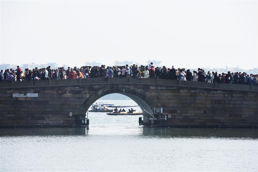 ZHEJIANG, febrero 11, 2019 (Xinhua) -- Imagen del 6 de febrero de 2019 de turistas visitando el área escénica del Lago Oeste, en Hangzhou, en la provincia de Zhejiang, en el este de China. El ingreso del turismo local de China fue de 513.9 billones de yuanes (aproximadamente 76.21 billones de dólares estadounidenses) durante las vacaciones por la Fiesta de Primavera, que terminó el domingo, un incremento anual de 8.2 por ciento, de acuerdo con el Ministerio de Cultura y Turismo. (Xinhua/Long Wei)