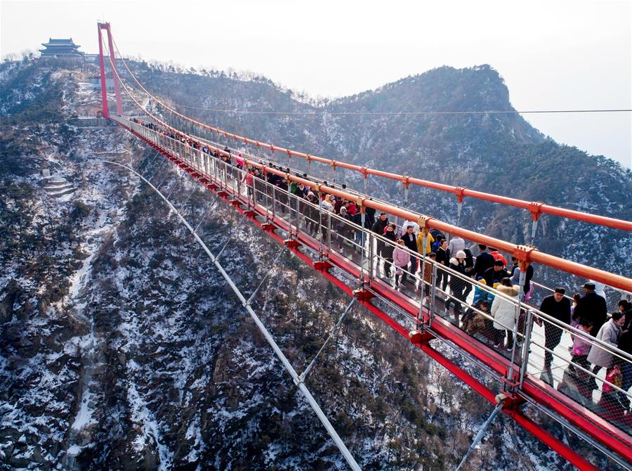 SHANDONG, febrero 11, 2019 (Xinhua) -- Imagen del 9 de febrero de 2019 de turistas visitando un punto escénico en la Monta?a Yimeng, en Linyi, en la provincia de Shandong, en el este de China. El ingreso del turismo local de China fue de 513.9 billones de yuanes (aproximadamente 76.21 billones de dólares estadounidenses) durante las vacaciones por la Fiesta de Primavera, que terminó el domingo, un incremento anual de 8.2 por ciento, de acuerdo con el Ministerio de Cultura y Turismo. (Xinhua/Wu Jiquan)