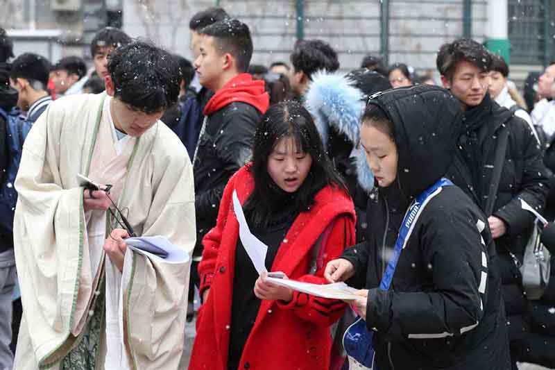 Los estudiantes se preparan para el examen de admisión en la Academia Central de Drama en Beijing el 12 de febrero de 2019. [Foto por Wang Zhuangfei / chinadaily.com.cn]