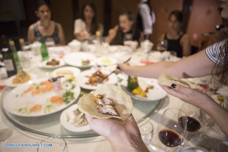 BUENOS AIRES, febrero 12, 2019 (Xinhua) -- Imagen del 8 de febrero de 2019 de comensales degustando un platillo de "pato laqueado" durante una cena en el restaurante "Beijing" en Buenos Aires, Argentina. La gastronomía de China en Buenos Aires cobró durante el mes de febrero un valor significativo como parte de las celebraciones en la capital argentina del A?o Nuevo Chino del Cerdo 2019. A tono con el interés cada vez mayor que despierta la cultura china en Argentina, y en el marco de las celebraciones por el A?o Nuevo Chino que continuarán hasta el martes 19 próximo, una inédita "Ruta del A?o Nuevo Chino" ha permitido conocer más del país asiático a través de charlas, proyecciones audiovisuales, muestras y exhibiciones en museos y menús especiales en restaurantes chinos de diversos distritos. (Xinhua/Martín Zabala)