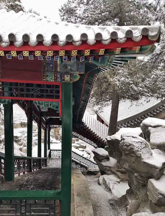 El parque Beihai cubierto de nieve en Beijing el 12 de febrero de 2019. [Foto de Johnny para chinadaily.com.cn]