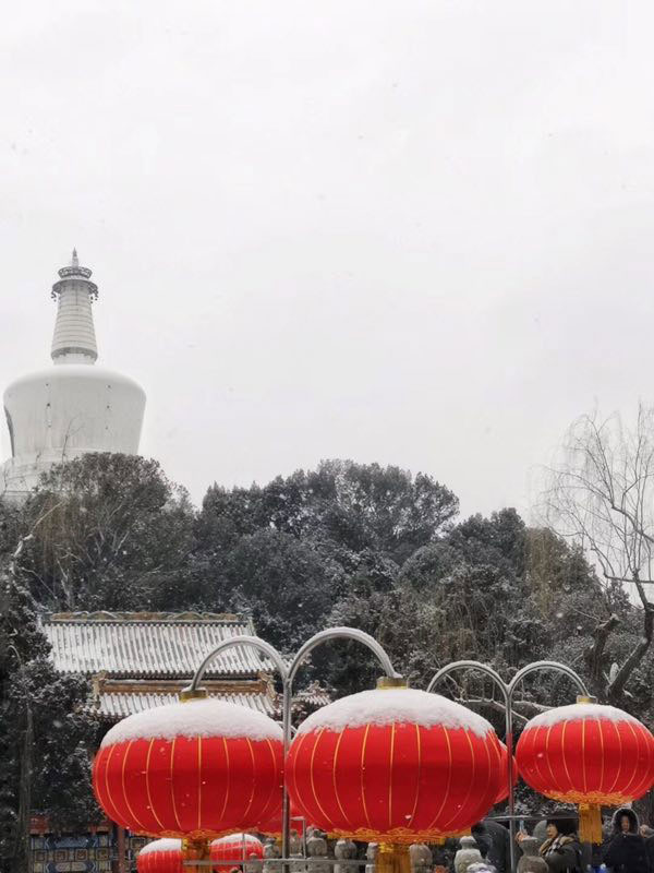 El parque Beihai cubierto de nieve en Beijing el 12 de febrero de 2019. [Foto de Johnny para chinadaily.com.cn]