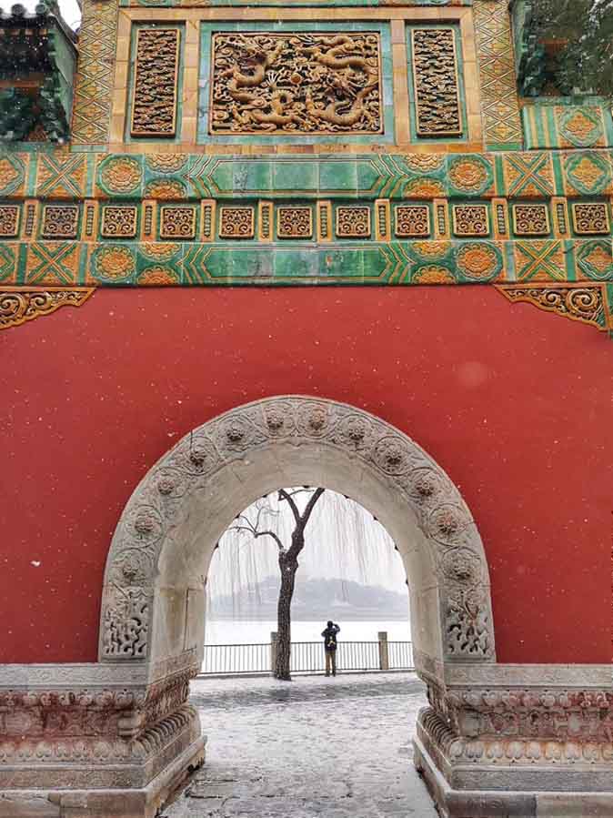 El parque Beihai cubierto de nieve en Beijing el 12 de febrero de 2019. [Foto de Johnny para chinadaily.com.cn]