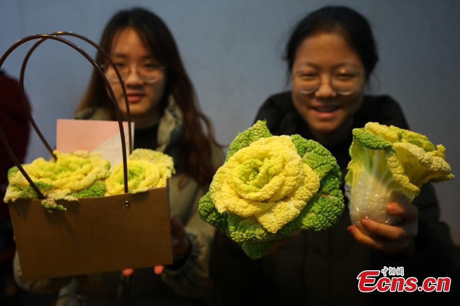 Los estudiantes empaquetan un nuevo tipo de col china, creada por el profesor Hou Xilin en la Facultad de Horticultura de la Universidad Agrícola de Nanjing, el 13 de febrero de 2019. Varios estudiantes han creado una nueva empresa para comercializar en línea y fuera de línea la col china, que es más peque?a en tama?o, tiene forma de rosa y sabe mejor. (Foto: China News Service / Yang Bo)