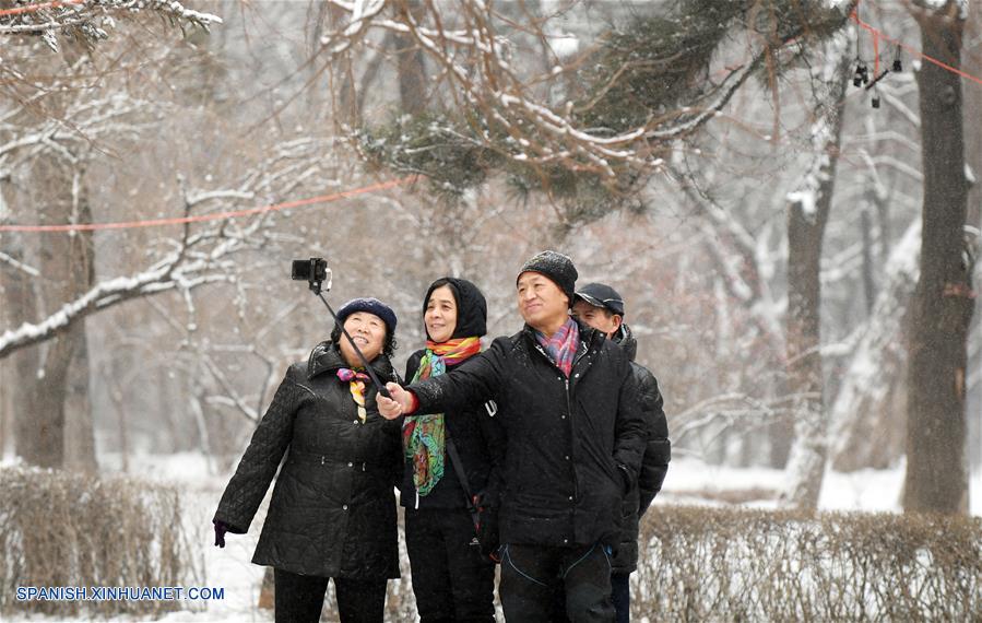 JILIN, febrero 15, 2019 (Xinhua) -- Personas se toman una "selfie" en el Parque Nanhu, en Changchun, provincia de Jilin, en el noreste de China, el 15 de febrero de 2019. (Xinhua/Lin Hong)
