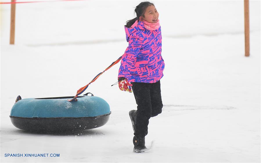 JILIN, febrero 15, 2019 (Xinhua) -- Una ni?a juega en la nieve en el Parque Nanhu, en Changchun, provincia de Jilin, en el noreste de China, el 15 de febrero de 2019. (Xinhua/Lin Hong)