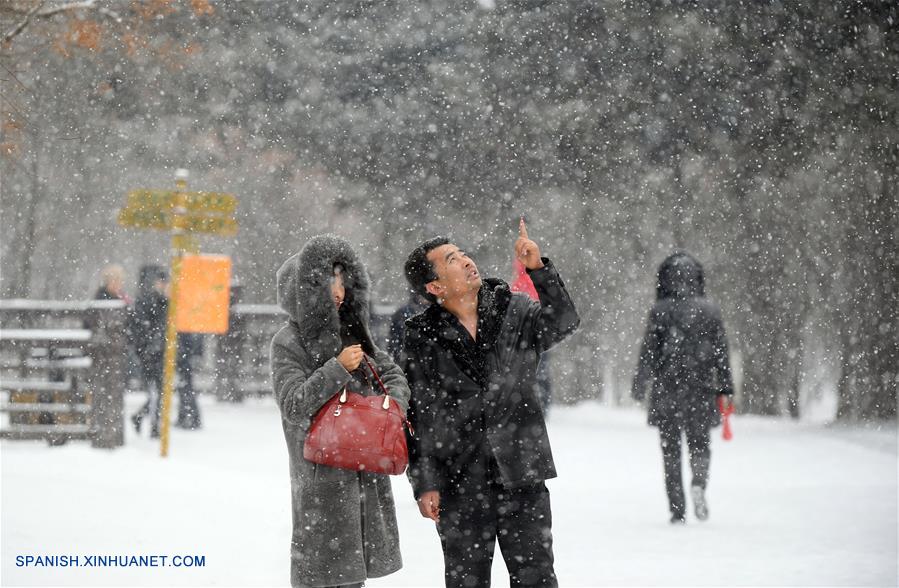 JILIN, febrero 15, 2019 (Xinhua) -- Personas observan la nevada en el Parque Deyuan, en Changchun, provincia de Jilin, en el noreste de China, el 15 de febrero de 2019. (Xinhua/Lin Hong)