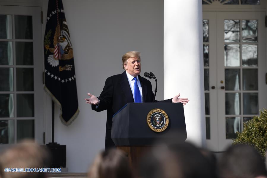 WASHINGTON D.C, febrero 15, 2019 (Xinhua) -- El presidente de Estados Unidos, Donald Trump, emite un anuncio en el Jardín de las Rosas de la Casa Blanca, en Washington D.C., Estados Unidos, el 15 de febrero de 2019. El presidente de Estados Unidos, Donald Trump, anunció el viernes que decretará una emergencia nacional para ampliar el muro fronterizo entre Estados Unidos y México e impulsar su emblemática promesa de campa?a. (Xinhua/Hu Yousong)