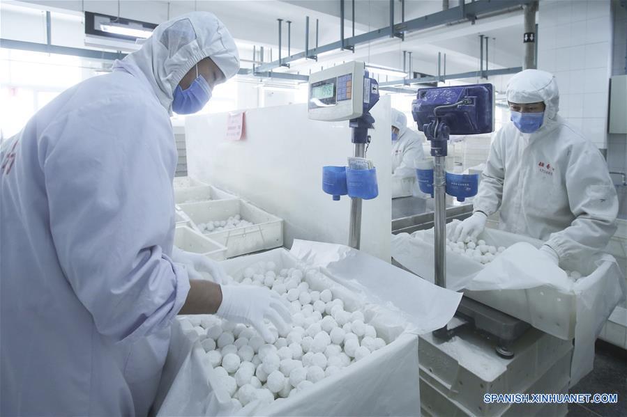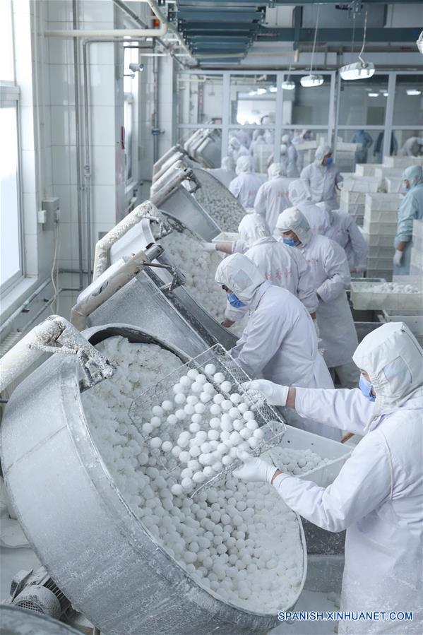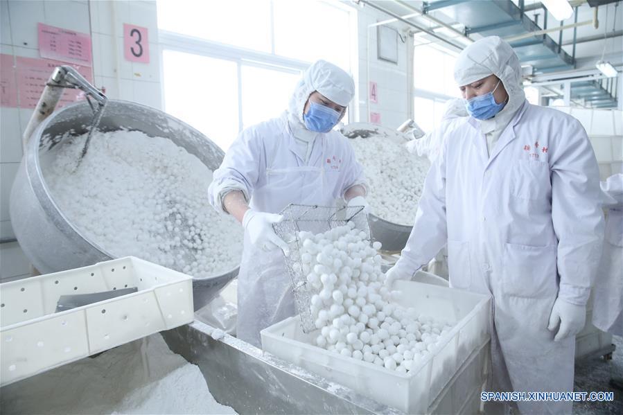 BEIJING, febrero 17, 2019 (Xinhua) --Un trabajador revisa la calidad de dumplings dulces, un tipo de pudines hechos de arroz glutinoso con relleno de diferentes sabores, en un taller de una tradicional compa?ía productora de comida, en Beijing, capital de China, el 17 de febrero de 2019. Los trabajadores de la compa?ía de comida se encuentran ocupados produciendo dumplings dulces para cubrir la demanda del mercado para el Festival de la Linterna, que este a?o se celebra el 19 de febrero. (Xinhua/Chen Xiaogen)
