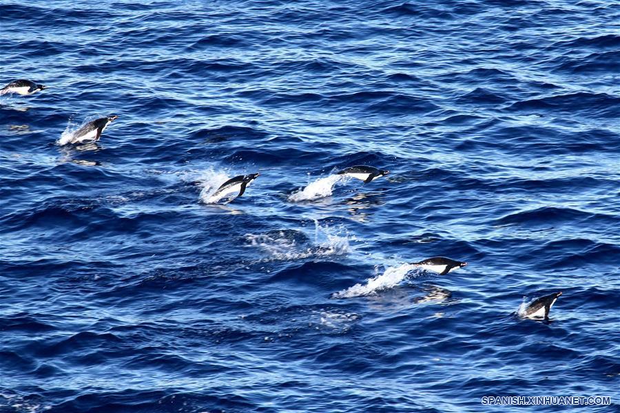 ABORDO DEL XUELONG, febrero 17, 2019 (Xinhua) -- Imagen del 15 de febrero de 2019, de pingüinos nadando en la Antártida. El rompehielos de investigación Xuelong de China, con sus 126 tripulantes abordo de la 35 misión de investigación de Antártica, partió el jueves hora local de la Estación Zhongshan para su viaje de regreso a China. Se espera que llegue a Shanghai a mediados de marzo. (Xinhua/Liu Shiping)