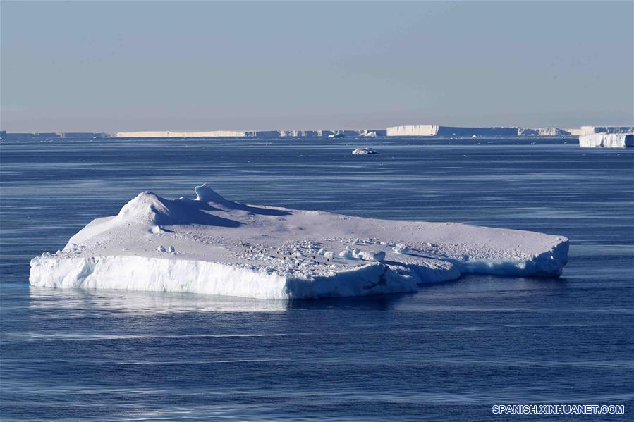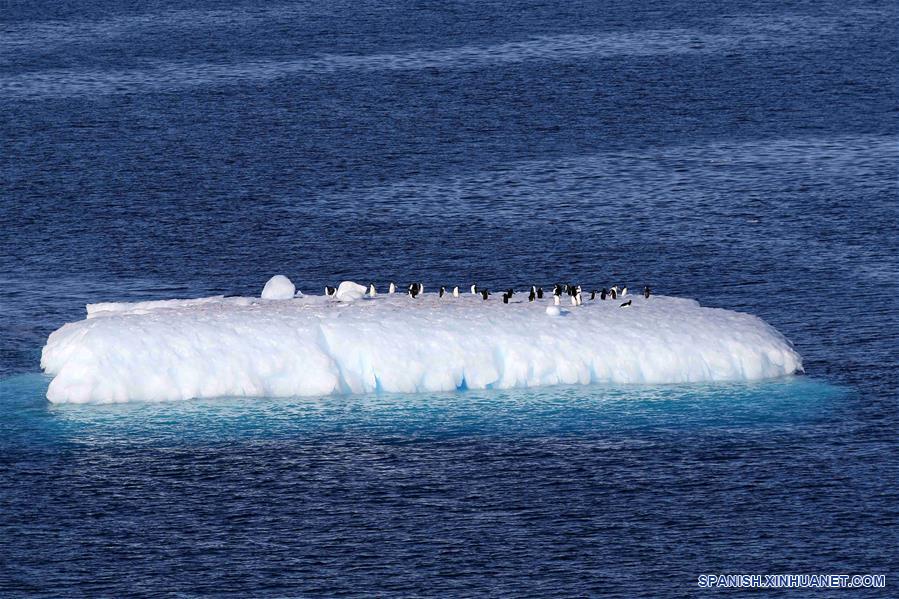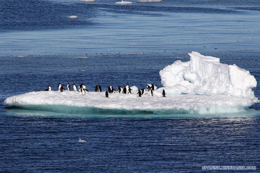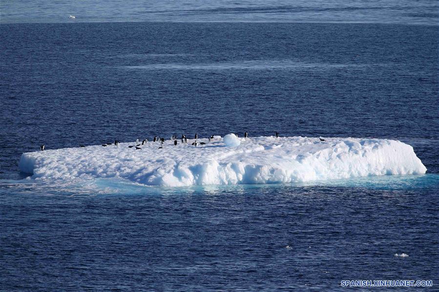 ABORDO DEL XUELONG, febrero 17, 2019 (Xinhua) -- Imagen del 15 de febrero de 2019, de pingüinos en un iceberg en la Antártida. El rompehielos de investigación Xuelong de China, con sus 126 tripulantes abordo de la 35 misión de investigación de Antártica, partió el jueves hora local de la Estación Zhongshan para su viaje de regreso a China. Se espera que llegue a Shanghai a mediados de marzo. (Xinhua/Liu Shiping)