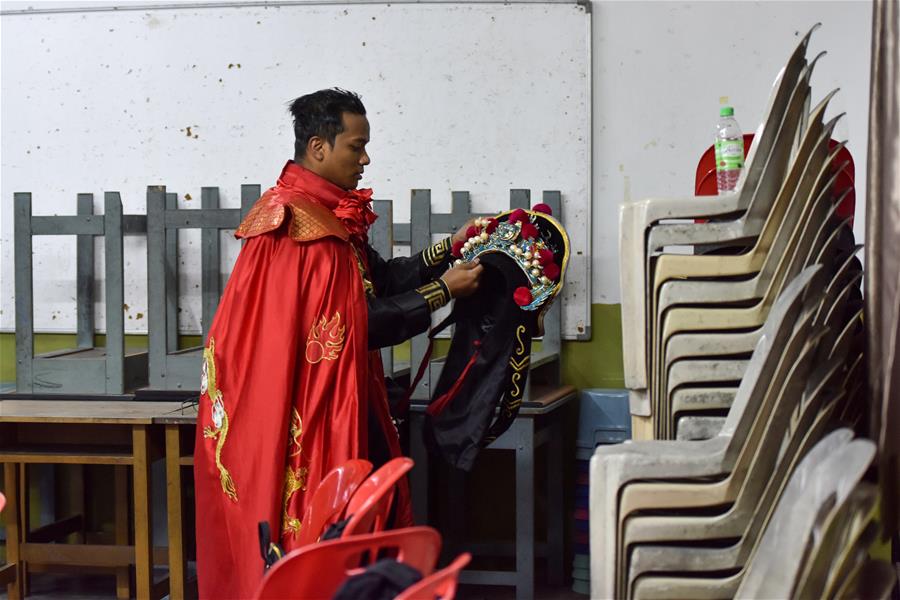 KUALA LUMPUR, febrero 17, 2019 (Xinhua) -- Imagen del 15 de febrero de 2019, de Suresh Subramaniam (atrás) preparándose para salir a escena, en Kuala Lumpur, capital de Malasia. Suresh Subramaniam ha sido un aficionado de la magia desde que era peque?o. Hace siete a?os, cuando Suresh tenía 21 a?os, conoció a un maestro chino de cambio de caras y estudió la técnica con él por un mes. Suresh siguió practicando desde entonces, y ahora es capaz de llevar a cabo presentaciones con su toque personal. Suresh dice que ha sido un honor aprender la técnica de cambio de caras y conocer sobre la cultura china. Espera poder seguir practicando y realizando presentaciones, así como incorporar elementos de otras culturas a su espectáculo. (Xinhua/Chong Voon Chung)