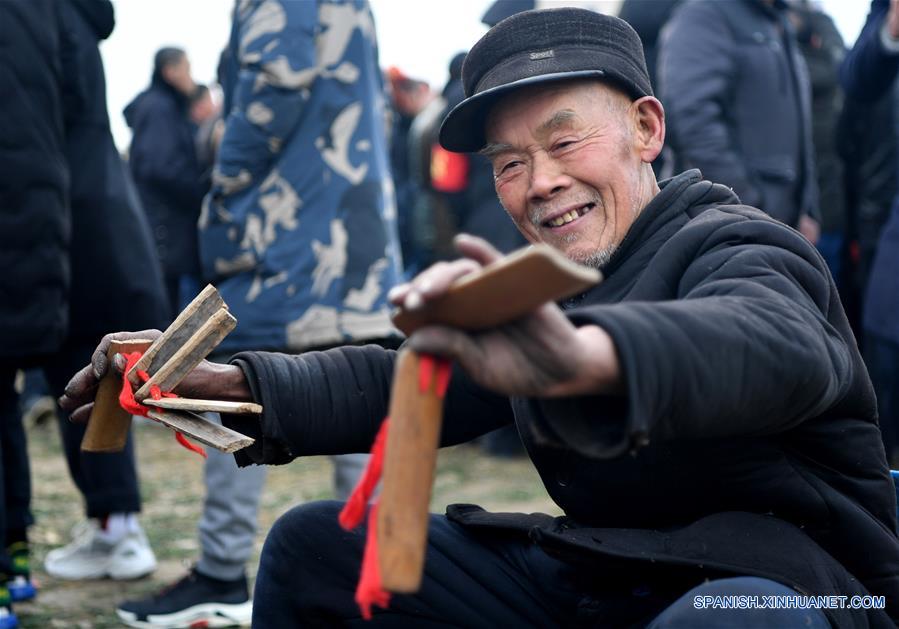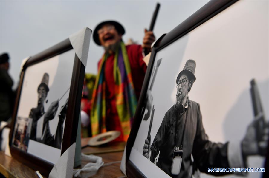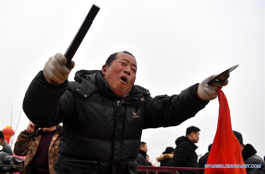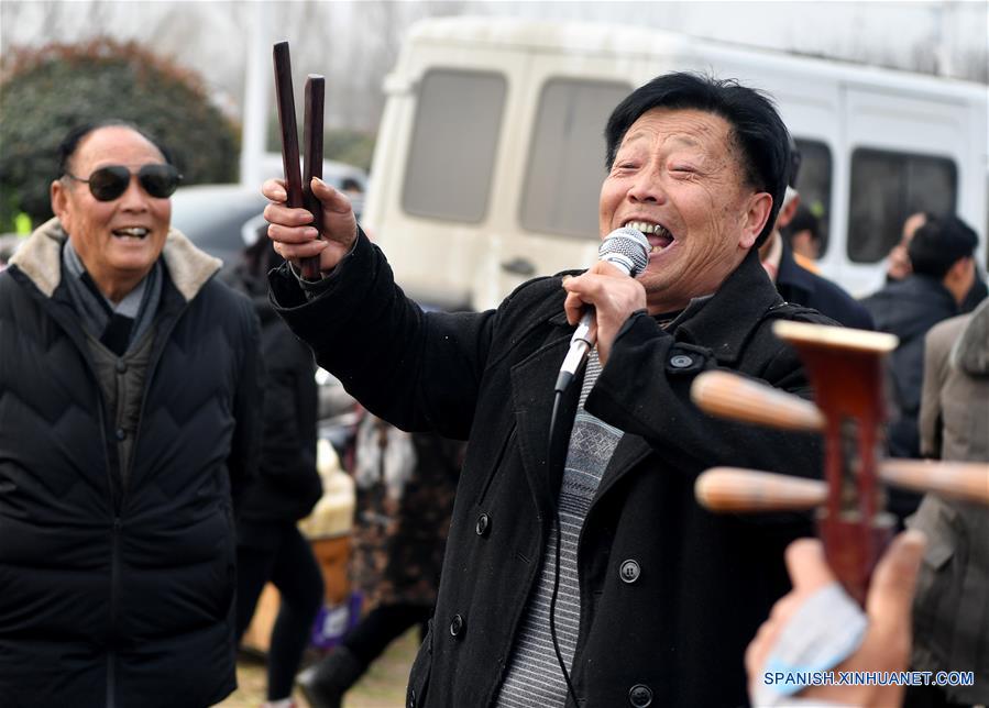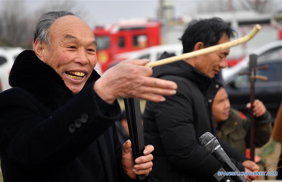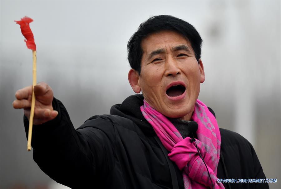 HENAN, febrero 17, 2019 (Xinhua) -- Un artista folclórico realiza una presentación en la Feria Quyi en la villa de Majie del condado de Baofeng, en la provincia de Henan, en el centro de China, el 17 de febrero de 2019. Cada a?o después del Festival de Primavera, la villa de Majie, de la provincia de Henan, en el centro de China, es visitada por artistas tradicionales de todo el país. Desde hace 700 a?os se realiza la feria del arte tradicional en Majie. El arte tradicional chino, o Quyi, tiene muchas formas, incluyendo canto de balada, narración de historias y diálogo cómico. En 2006, la feria Majie Quyi fue inscrita en la primera lista de patrimonio cultural intangible nacional. (Xinhua/Li Jianan)