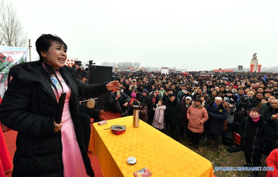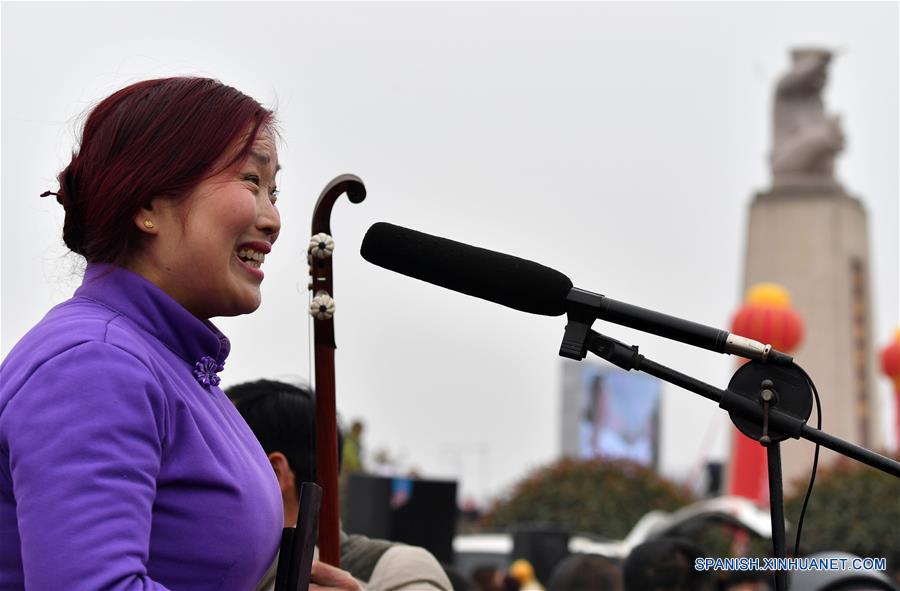 HENAN, febrero 17, 2019 (Xinhua) -- Una artista folclórica realiza una presentación en la Feria Quyi en la villa de Majie del condado de Baofeng, en la provincia de Henan, en el centro de China, el 17 de febrero de 2019. Cada a?o después del Festival de Primavera, la villa de Majie, de la provincia de Henan, en el centro de China, es visitada por artistas tradicionales de todo el país. Desde hace 700 a?os se realiza la feria del arte tradicional en Majie. El arte tradicional chino, o Quyi, tiene muchas formas, incluyendo canto de balada, narración de historias y diálogo cómico. En 2006, la feria Majie Quyi fue inscrita en la primera lista de patrimonio cultural intangible nacional. (Xinhua/Li Jianan)