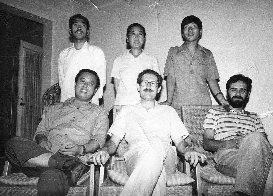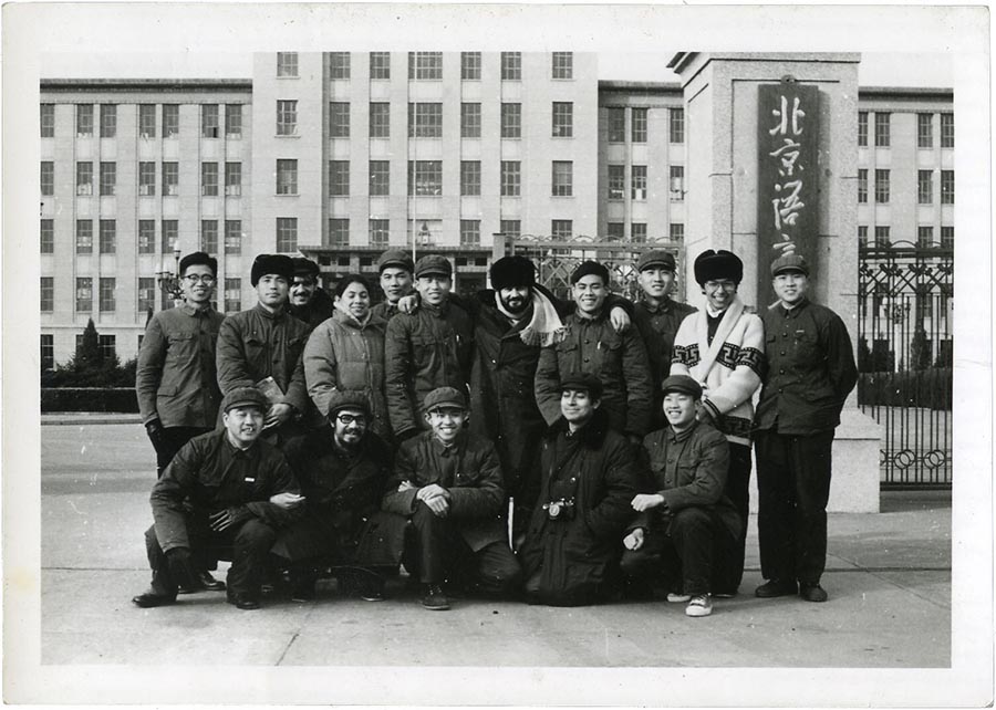 Rovetta con compa?eros del Instituto de Lenguas de Beijing (3 de la izquierda en 2a fila) en 1977