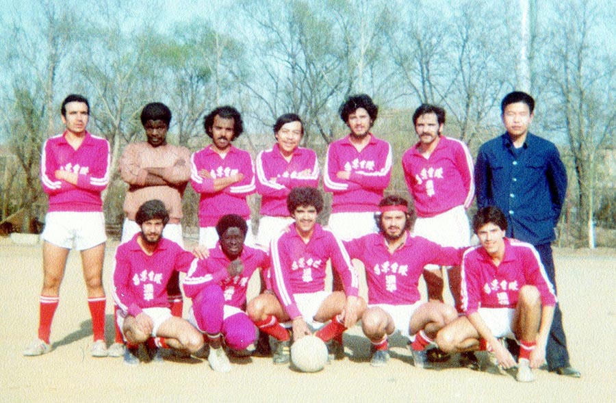 Rovetta con su equipo de fútbol en Tsinghua (2 de la derecha en 2a fila) en 1978.