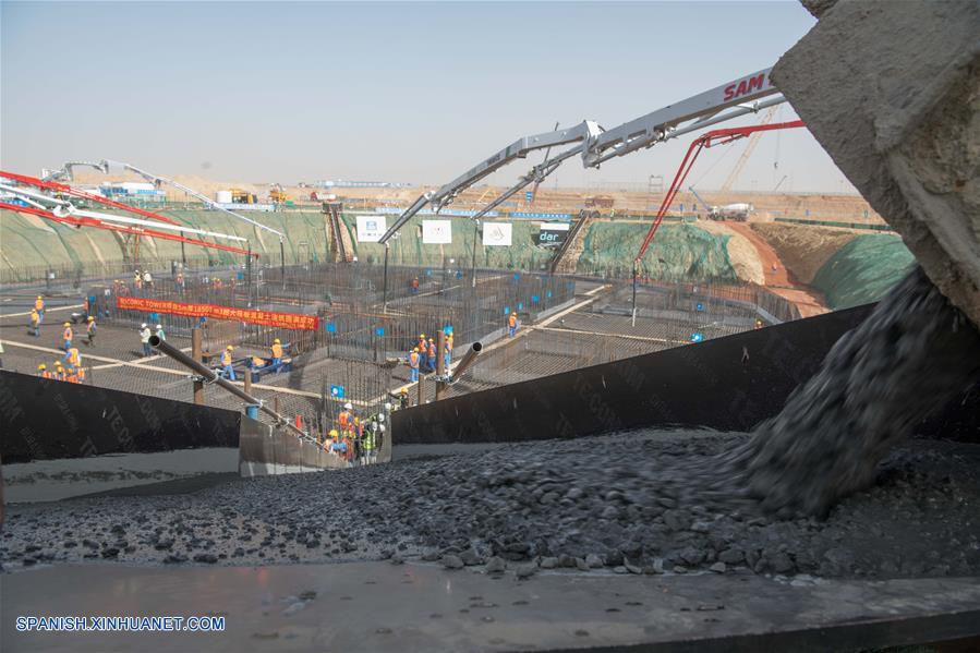 EL CAIRO, febrero 25, 2019 (Xinhua) -- Vista del sitio de construcción en la nueva capital administrativa de Egipto, a unos 45 kilómetros al este de El Cairo, Egipto, el 25 de febrero de 2019. El primer ministro de Egipto, Mostafa Madbouly, elogió el lunes los avances de la China State Construction Engineering Corporation (CSCEC) en la construcción de la "Torre Icónica" como parte del proyecto del Distrito de Negocios Central de la nueva capital administrativa de Egipto, a unos 45 kilómetros al este de El Cairo. (Xinhua/Wu Huiwo)