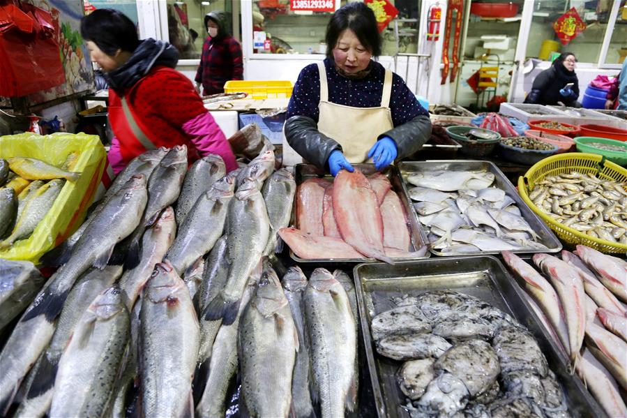 JIANGSU, febrero 25, 2019 (Xinhua) -- Imagen del 15 de febrero de 2019 de una vendedora acomodando pescados en un mercado en Lianyungang, en la provincia de Jiangsu, en el este de China. China ha publicado una directriz para mejorar el sistema de rendición de cuentas de los Gobiernos locales a fin de fortalecer la supervisión sobre la seguridad alimentaria. La seguridad alimentaria será incluida en la evaluación del desempe?o de los principales funcionarios del Gobierno, de acuerdo con el documento, que fue emitido conjuntamente por el Comité Central del Partido Comunista de China (PCCh) y el Consejo de Estado (gabinete) durante el fin de semana. La directriz tiene como objetivo promover el trabajo de seguridad alimentaria de las Administraciones locales y mejorar el bienestar del pueblo. La inocuidad de los alimentos, incluida la seguridad de los productos agrícolas, se incluirá en el plan nacional de desarrollo económico y social de los Gobiernos locales. También será incluida en las prioridades del trabajo de los Gobiernos locales y estará sujeta a la supervisión de legisladores y asesores políticos, de acuerdo con el documento. La directriz especifica los requisitos principales para que los Gobiernos locales fortalezcan la supervisión sobre la inocuidad de los alimentos, incluidos la mejora de la supervisión y del sistema de asignación de responsabilidades; el fortalecimiento de la capacidad y de la eficiencia de la supervisión, y la formulación de un plan de emergencia para incidentes relacionados con la seguridad alimentaria. El documento también detalla los incentivos y las sanciones para las autoridades locales en la gestión del trabajo relacionado con la seguridad alimentaria. (Xinhua/Wang Chun)