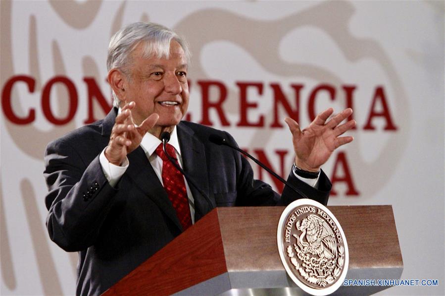 CIUDAD DE MEXICO, febrero 26, 2019 (Xinhua) -- El presidente de México, Andrés Manuel López Obrador, participa en una conferencia de prensa matutina en Palacio Nacional, en la Ciudad de México, capital de México, el 26 de febrero de 2019. El presidente de México, Andrés Manuel López Obrador, llamó el martes de nueva cuenta y de manera respetuosa a las partes de Venezuela a que se sienten a dialogar y busquen una solución pacífica. (Xinhua/Str)