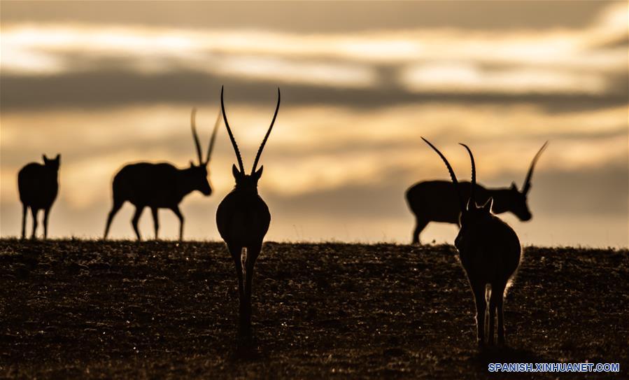 SHUANGHU, febrero 27, 2019 (Xinhua) -- Imagen del 31 de enero de 2019 de una vista de antílopes tibetanos, en el condado de Shuanghu, en la Región Autónoma del Tíbet, en el suroeste de China. El condado de Shuanghu, localizado a 5,000 metros sobre el nivel del mar en la Región Autónoma del Tíbet, en el suroeste de China, sufre de fuertes vientos 200 días al a?o. Con una temperatura media durante el a?o de menos cinco grados centígrados, Shuanghu es el hogar del tercer glaciar más grande del mundo, Purog Kangri. Ocasionalmente, la temperatura aquí cae a menos 40 grados centígrados. El condado, con un área de aproximadamente 120,000 kilómetros cuadrados, se encuentra en el medio de la Reserva Natural Nacional Qiangtang. Hay 135 empleados de conservación trabajando en las 15 estaciones de manejo y conservación de vida silvestre de Shuanghu para mejorar la protección de los animales salvajes. En 2018, el gobierno del condado suspendió la construcción de servicios de apoyo relacionados con el turismo alrededor del glaciar Purog Kangri para proteger mejor el medio ambiente. Shuanghu ahora tiene aproximadamente 20,000 yaks salvajes y 200,000 antílopes tibetanos, además de más de 20 especies raras como el leopardo de las nieves y el oso pardo. (Xinhua/Purbu Zhaxi)