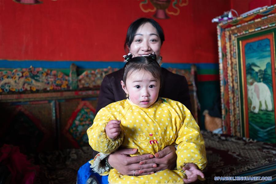 SHUANGHU, febrero 27, 2019 (Xinhua) -- Imagen del 31 de enero de 2019 de una pastora cuidando de su hijo, en el municipio de Garco del condado de Shuanghu, en la Región Autónoma del Tíbet, en el suroeste de China. El condado de Shuanghu, localizado a 5,000 metros sobre el nivel del mar en la Región Autónoma del Tíbet, en el suroeste de China, sufre de fuertes vientos 200 días al a?o. Con una temperatura media durante el a?o de menos cinco grados centígrados, Shuanghu es el hogar del tercer glaciar más grande del mundo, Purog Kangri. Ocasionalmente, la temperatura aquí cae a menos 40 grados centígrados. El condado, con un área de aproximadamente 120,000 kilómetros cuadrados, se encuentra en el medio de la Reserva Natural Nacional Qiangtang. Hay 135 empleados de conservación trabajando en las 15 estaciones de manejo y conservación de vida silvestre de Shuanghu para mejorar la protección de los animales salvajes. En 2018, el gobierno del condado suspendió la construcción de servicios de apoyo relacionados con el turismo alrededor del glaciar Purog Kangri para proteger mejor el medio ambiente. Shuanghu ahora tiene aproximadamente 20,000 yaks salvajes y 200,000 antílopes tibetanos, además de más de 20 especies raras como el leopardo de las nieves y el oso pardo. (Xinhua/Purbu Zhaxi)