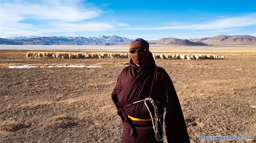 SHUANGHU, febrero 27, 2019 (Xinhua) -- Imagen del 30 de enero de 2019 de un pastor observando en el condado de Shuanghu, en la Región Autónoma del Tíbet, en el suroeste de China. El condado de Shuanghu, localizado a 5,000 metros sobre el nivel del mar en la Región Autónoma del Tíbet, en el suroeste de China, sufre de fuertes vientos 200 días al a?o. Con una temperatura media durante el a?o de menos cinco grados centígrados, Shuanghu es el hogar del tercer glaciar más grande del mundo, Purog Kangri. Ocasionalmente, la temperatura aquí cae a menos 40 grados centígrados. El condado, con un área de aproximadamente 120,000 kilómetros cuadrados, se encuentra en el medio de la Reserva Natural Nacional Qiangtang. Hay 135 empleados de conservación trabajando en las 15 estaciones de manejo y conservación de vida silvestre de Shuanghu para mejorar la protección de los animales salvajes. En 2018, el gobierno del condado suspendió la construcción de servicios de apoyo relacionados con el turismo alrededor del glaciar Purog Kangri para proteger mejor el medio ambiente. Shuanghu ahora tiene aproximadamente 20,000 yaks salvajes y 200,000 antílopes tibetanos, además de más de 20 especies raras como el leopardo de las nieves y el oso pardo. (Xinhua/Purbu Zhaxi)