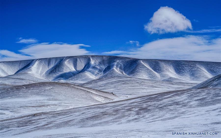 SHUANGHU, febrero 27, 2019 (Xinhua) -- Imagen del 1 de febrero de 2019 de una vista del paisaje del condado de Shuanghu, en la Región Autónoma del Tíbet, en el suroeste de China. El condado de Shuanghu, localizado a 5,000 metros sobre el nivel del mar en la Región Autónoma del Tíbet, en el suroeste de China, sufre de fuertes vientos 200 días al a?o. Con una temperatura media durante el a?o de menos cinco grados centígrados, Shuanghu es el hogar del tercer glaciar más grande del mundo, Purog Kangri. Ocasionalmente, la temperatura aquí cae a menos 40 grados centígrados. El condado, con un área de aproximadamente 120,000 kilómetros cuadrados, se encuentra en el medio de la Reserva Natural Nacional Qiangtang. Hay 135 empleados de conservación trabajando en las 15 estaciones de manejo y conservación de vida silvestre de Shuanghu para mejorar la protección de los animales salvajes. En 2018, el gobierno del condado suspendió la construcción de servicios de apoyo relacionados con el turismo alrededor del glaciar Purog Kangri para proteger mejor el medio ambiente. Shuanghu ahora tiene aproximadamente 20,000 yaks salvajes y 200,000 antílopes tibetanos, además de más de 20 especies raras como el leopardo de las nieves y el oso pardo. (Xinhua/Purbu Zhaxi)