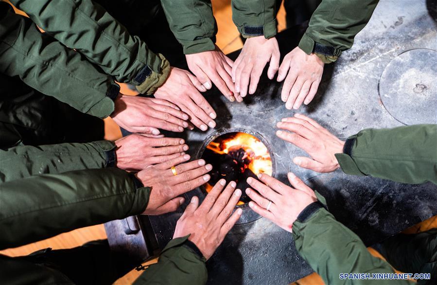 SHUANGHU, febrero 27, 2019 (Xinhua) -- Imagen del 1 de febrero de 2019 de miembros de la estación de manejo y conservación de la vida silvestre calentándose las manos con una hoguera, en el condado de Shuanghu, en la Región Autónoma del Tíbet, en el suroeste de China. El condado de Shuanghu, localizado a 5,000 metros sobre el nivel del mar en la Región Autónoma del Tíbet, en el suroeste de China, sufre de fuertes vientos 200 días al a?o. Con una temperatura media durante el a?o de menos cinco grados centígrados, Shuanghu es el hogar del tercer glaciar más grande del mundo, Purog Kangri. Ocasionalmente, la temperatura aquí cae a menos 40 grados centígrados. El condado, con un área de aproximadamente 120,000 kilómetros cuadrados, se encuentra en el medio de la Reserva Natural Nacional Qiangtang. Hay 135 empleados de conservación trabajando en las 15 estaciones de manejo y conservación de vida silvestre de Shuanghu para mejorar la protección de los animales salvajes. En 2018, el gobierno del condado suspendió la construcción de servicios de apoyo relacionados con el turismo alrededor del glaciar Purog Kangri para proteger mejor el medio ambiente. Shuanghu ahora tiene aproximadamente 20,000 yaks salvajes y 200,000 antílopes tibetanos, además de más de 20 especies raras como el leopardo de las nieves y el oso pardo. (Xinhua/Purbu Zhaxi)