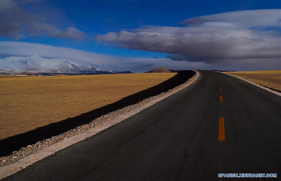 SHUANGHU, febrero 27, 2019 (Xinhua) -- Imagen del 31 de enero de 2019 de una vista de una carretera, en el condado de Shuanghu, en la Región Autónoma del Tíbet, en el suroeste de China. El condado de Shuanghu, localizado a 5,000 metros sobre el nivel del mar en la Región Autónoma del Tíbet, en el suroeste de China, sufre de fuertes vientos 200 días al a?o. Con una temperatura media durante el a?o de menos cinco grados centígrados, Shuanghu es el hogar del tercer glaciar más grande del mundo, Purog Kangri. Ocasionalmente, la temperatura aquí cae a menos 40 grados centígrados. El condado, con un área de aproximadamente 120,000 kilómetros cuadrados, se encuentra en el medio de la Reserva Natural Nacional Qiangtang. Hay 135 empleados de conservación trabajando en las 15 estaciones de manejo y conservación de vida silvestre de Shuanghu para mejorar la protección de los animales salvajes. En 2018, el gobierno del condado suspendió la construcción de servicios de apoyo relacionados con el turismo alrededor del glaciar Purog Kangri para proteger mejor el medio ambiente. Shuanghu ahora tiene aproximadamente 20,000 yaks salvajes y 200,000 antílopes tibetanos, además de más de 20 especies raras como el leopardo de las nieves y el oso pardo. (Xinhua/Purbu Zhaxi)