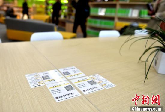 Códigos QR en el 'estudio de 24 horas' para evitar que los asientos sean ocupados. [Foto / Chinanews.com]