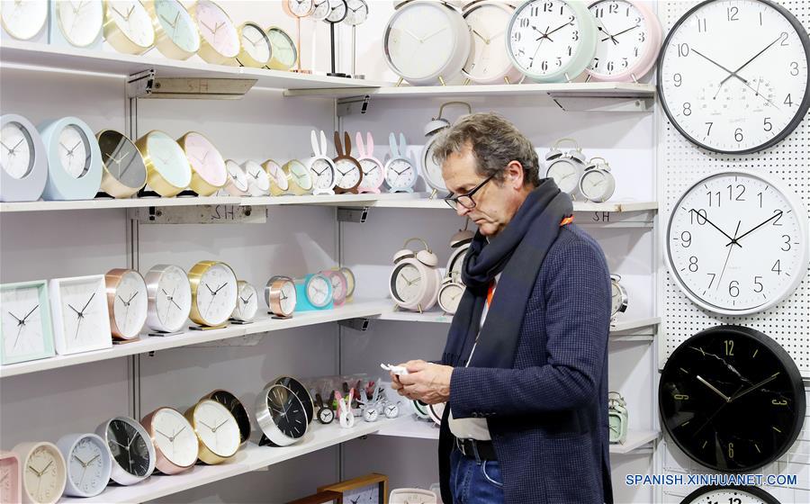 Un comerciante extranjero visita un estand de relojes durante la 29 Feria del Este de China, en Shanghai, en el este China, el 1 de marzo de 2019. La feria comenzó el viernes en Shanghai. (Xinhua/Fang Zhe)