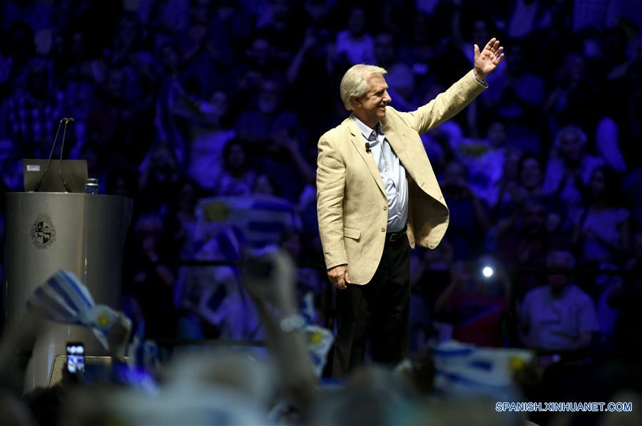 El presidente de Uruguay, Tabaré Vázquez saluda al finalizar su discurso sobre la rendición de cuentas anual, en el Antel Arena, en Montevideo, capital de Uruguay, el 1 de marzo de 2019. El presidente de Uruguay, Tabaré Vázquez, pidió el viernes al sistema político que la campa?a electoral para las elecciones presidenciales que elegirán a su sucesor sea "respetuosa" y "tolerante". Así lo dijo la noche del viernes en el acto por el cuarto aniversario de su mandato, el tercero consecutivo del izquierdista Frente Amplio (FA), celebrado en el estadio Antel Arena en Montevideo. (Xinhua/Nicolás Celaya)