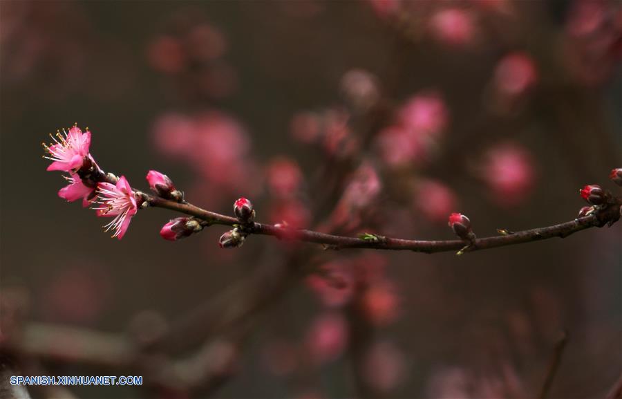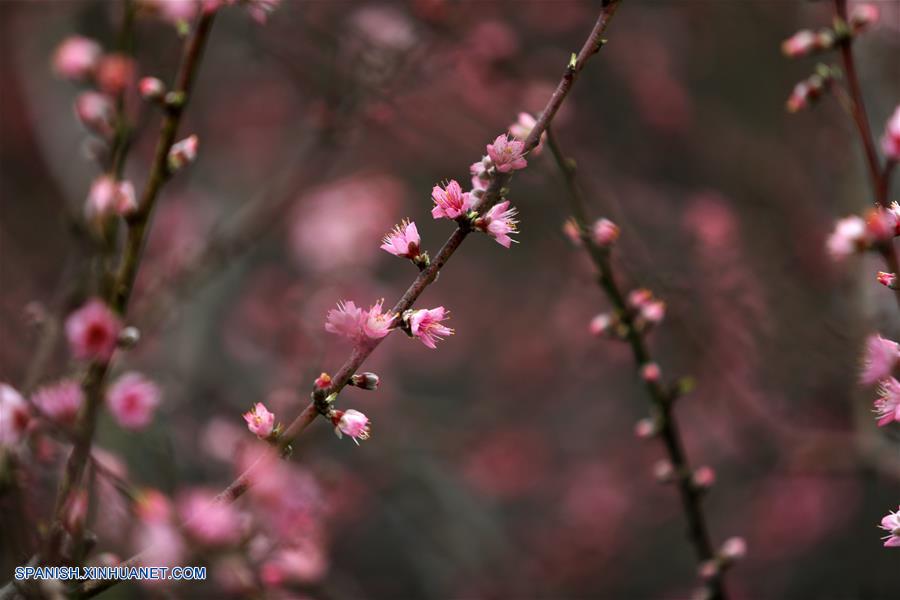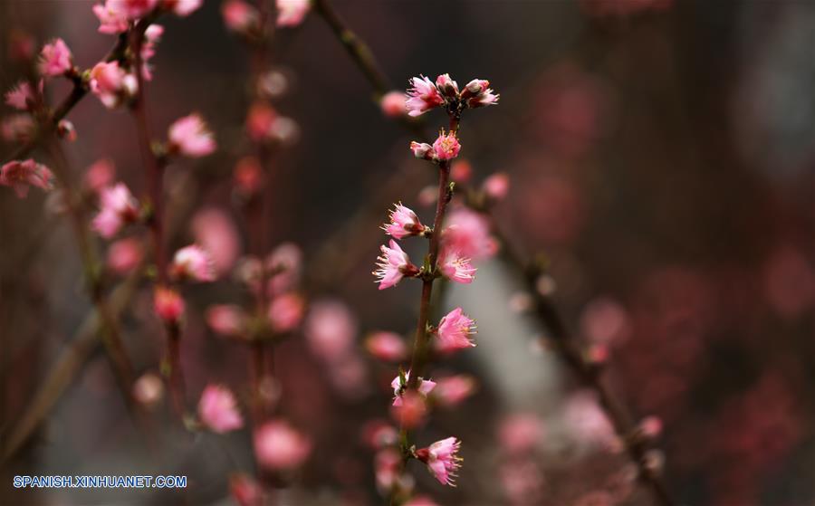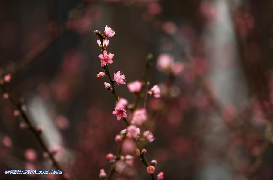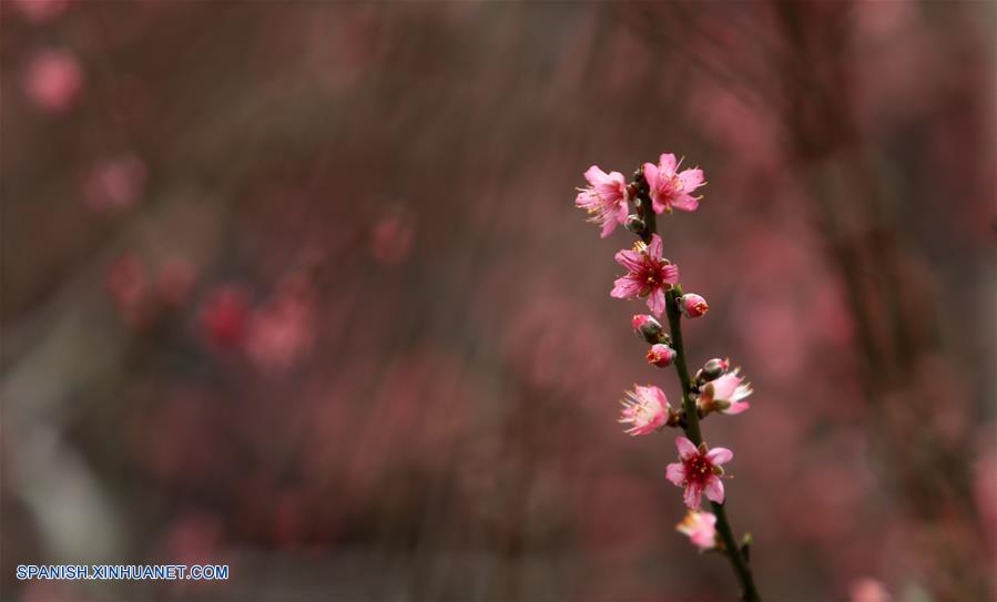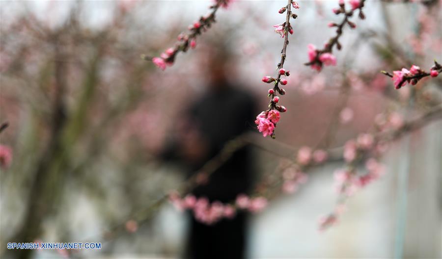 SHANDONG, marzo 2, 2019 (Xinhua) -- Imagen del 1 de marzo de 2019 de una vista de las flores de durazno en un invernadero duraznero, en la villa de Shili del condado de Tancheng en Linyi, provincia de Shandong, en el este de China. (Xinhua/Zhang Chunlei)