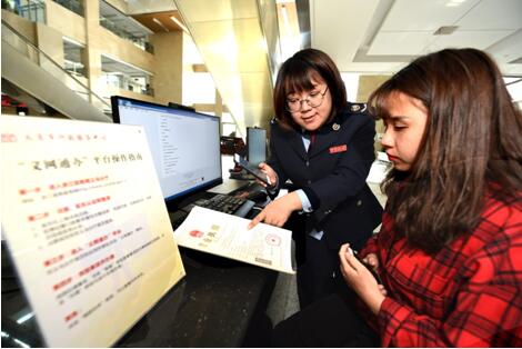 Leyenda: El 10 de abril de 2018, el personal de una oficina de impuestos en la ciudad de Yiwu, provincia de Zhejiang, asistió a una ciudadanadurante el manejo de sus asuntos relacionados con los impuestos a través de internet. (Gong Xianming / Diario del Pueblo)