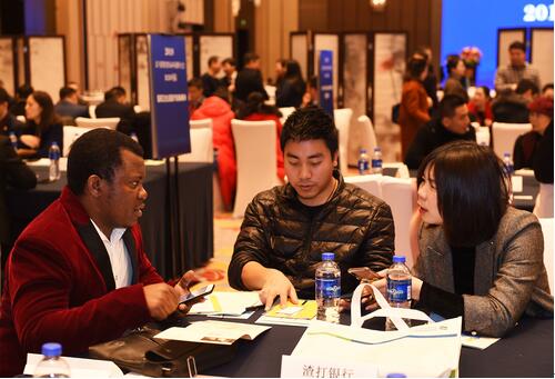 El 28 de febrero de 2019, se celebró una actividad de promoción del entorno comercial para la inversión privada entre China y áfrica en Yiwu, provincia de Zhejiang.La imagen muestra a los comerciantes chinos y africanos llevando a cabo una negociación B2B(Business to Business). (Foto: Gong Xianming / Diario del Pueblo)