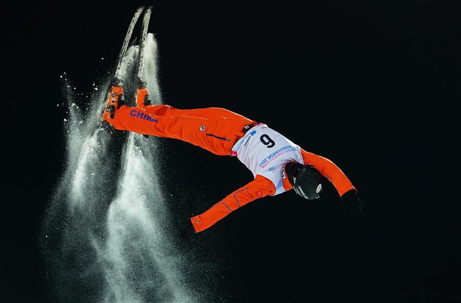 KRASNOYARSK, 3 marzo, 2019 (Xinhua) -- Li Zhonglin, de China, participa durante la final de esquí aéreo estilo libre varonil, en la 29 Universiada de Invierno en Krasnoyarsk, Rusia, el 3 de marzo de 2019. (Xinhua/Yang Shiyao)