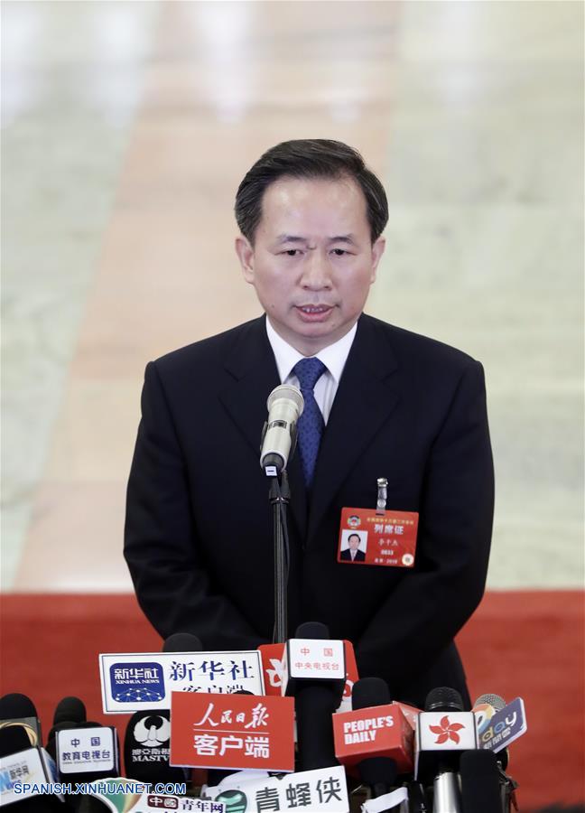BEIJING, marzo 3, 2019 (Xinhua) -- Li Ganjie, ministro de Ecología y Ambiente, recibe una entrevista luego de la reunión de apertura de la segunda sesión del XIII Comité Nacional de la Conferencia Consultiva Política del Pueblo Chino (CCPPCh) en el Gran Palacio del Pueblo en Beijing, capital de China, el 3 de marzo de 2019. (Xinhua/Chen Yehua)