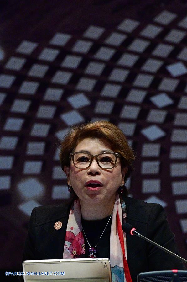 SANTIAGO, 4 marzo, 2019 (Xinhua) -- La directora ejecutiva del Foro de Cooperación Económica Asia-Pacífico (APEC), Rebecca Fátima Santa María, pronuncia un discurso durante la inauguración de la reunión del APEC Vision Group (AVG), en Santiago, capital de Chile, el 4 de marzo de 2019. El Foro de Cooperación Económica Asia-Pacífico (APEC) está listo para conectar las lecciones del pasado con la visión del futuro, afirmó el lunes el canciller chileno, Roberto Ampuero. (Xinhua/Jorge Villegas)