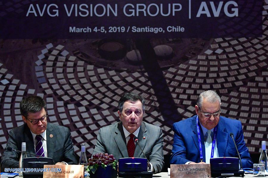 SANTIAGO, 4 marzo, 2019 (Xinhua) -- El ministro de Relaciones Exteriores de Chile, Roberto Ampuero (c), pronuncia un discurso durante la inauguración de la reunión del APEC Vision Group (AVG), en Santiago, capital de Chile, el 4 de marzo de 2019. El Foro de Cooperación Económica Asia-Pacífico (APEC) está listo para conectar las lecciones del pasado con la visión del futuro, afirmó el lunes el canciller chileno, Roberto Ampuero. (Xinhua/Jorge Villegas)