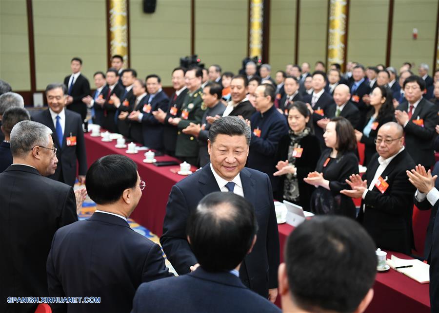 BEIJING, 4 marzo, 2019 (Xinhua) -- El presidente chino Xi Jinping, también secretario general del Comité Central del Partido Comunista de China (PCCh) y presidente de la Comisión Militar Central, visita a asesores políticos de los sectores de la cultura y el arte y de las ciencias sociales, quienes asisten a la segunda sesión del XIII Comité Nacional de la Conferencia Consultiva Política del Pueblo Chino (CCPPCh), en Beijing, capital de China, el 4 de marzo de 2019. Xi se reunió con los asesores políticos en una mesa redonda conjunta y escuchó sus opiniones y sugerencias. Wang Yang, miembro del Comité Permanente del Buró Político del Comité Central del PCCh y presidente del Comité Nacional de la CCPPCh también asistió a la deliberación. (Xinhua/Xie Huanchi)