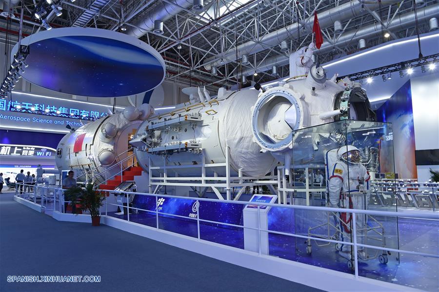 GUANGDONG, 4 marzo, 2019 (Xinhua) -- Imagen del 5 de noviembre de 2018 de una maqueta a tama?o real del módulo nuclear de la estación espacial Tianhe de China, mostrada durante la XII Exposición Internacional de Aviación y Aeroespacial de China (Airshow China), en Zhuhai, en la provincia de Guangdong, en el sur de China. La Oficina de Ingeniería Espacial Tripulada de China anunció el lunes que el módulo central de la estación espacial del país, el cohete portador Gran Marcha-5B y sus cargas serán enviados al lugar de lanzamiento en el segundo semestre del a?o, con el fin de hacer preparativos para las misiones de la estación espacial. China tiene previsto completar la construcción de la estación espacial en torno a 2022. Será el laboratorio espacial del país con funcionamiento en órbita estable a largo plazo. (Xinhua/Liang Xu)