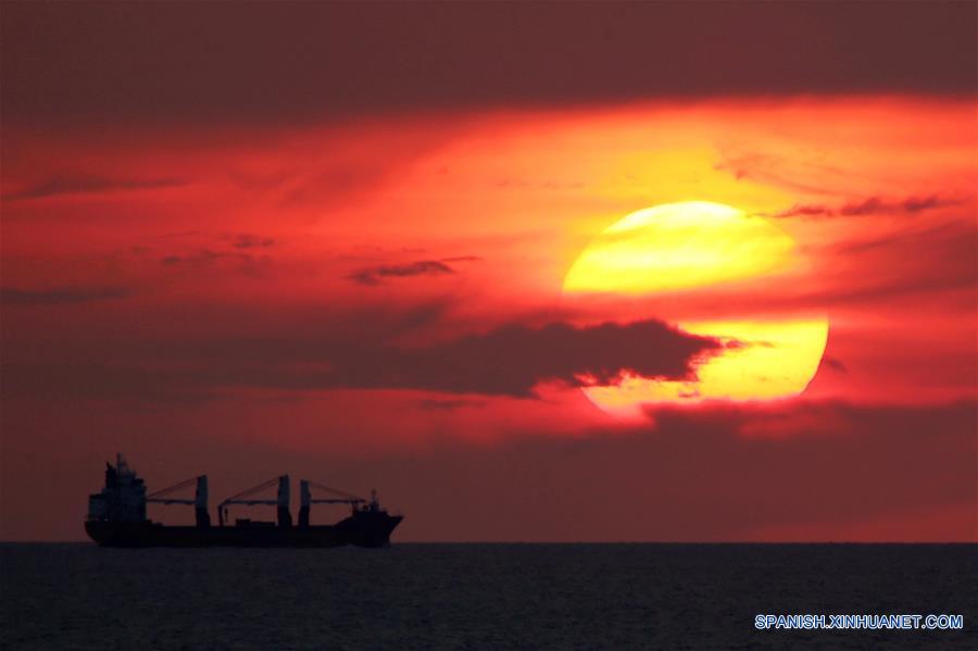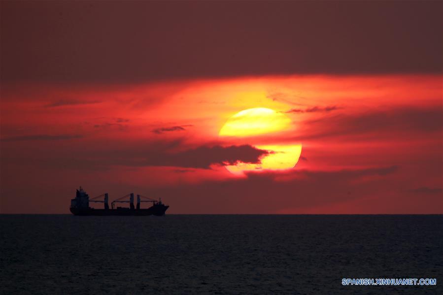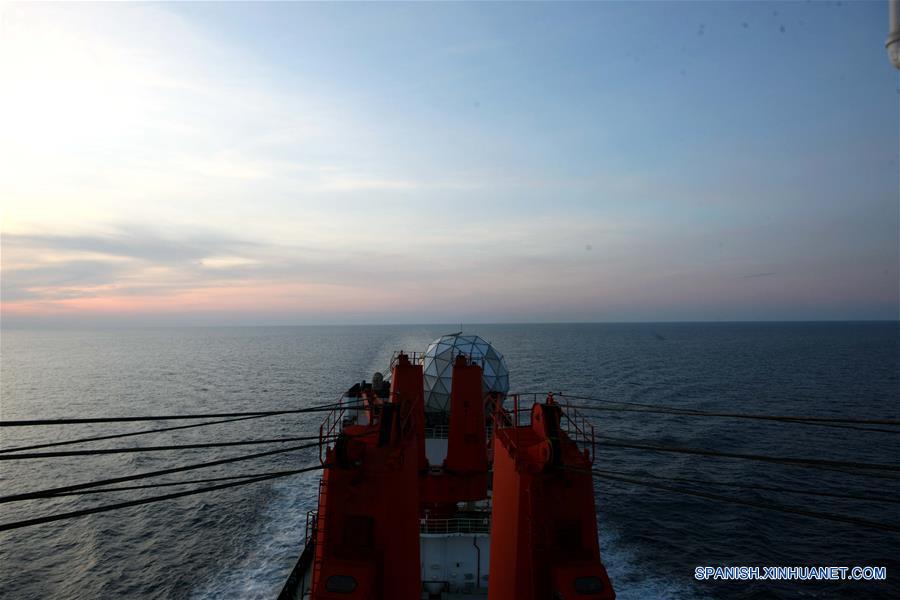 A BORDO XUELONG, 4 marzo, 2019 (Xinhua) -- Imagen del 3 de marzo de 2019 tomada a bordo del rompehielos de investigación chino Xuelong, del atardecer previo a cruzar el ecuador en el Océano Indico. El Xuelong, que transporta a miembros de la 35 misión de investigación a la Antártida, cruzó el ecuador y regresó al Hemisferio Norte el lunes por la ma?ana. (Xinhua/Liu Shiping)
