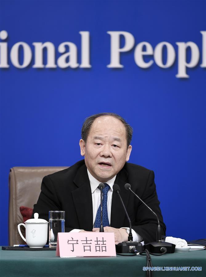 Ning Jizhe, subdirector de la Comisión Nacional de Desarrollo y Reforma, responde preguntas durante una conferencia de prensa sobre el impulso del desarrollo de alta calidad de la economía china en el marco de la segunda sesión de la XIII Asamblea Popular Nacional en Beijing, capital de China, el 6 de marzo de 2019. (Xinhua/Wang Peng)