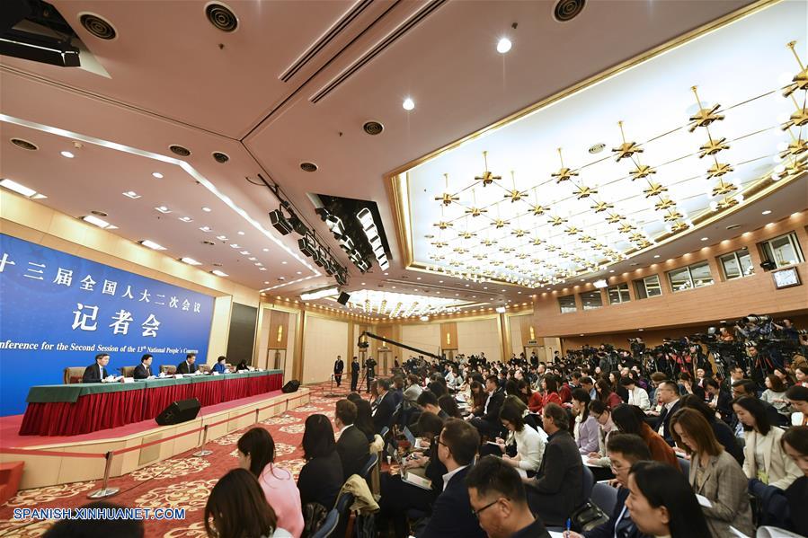BEIJING, 7 marzo, 2019 (Xinhua) -- El ministro de Hacienda, Liu Kun (c), y los viceministros Cheng Lihua (d) y Liu Wei participan en una conferencia de prensa sobre las reformas fiscales y tributarias y del trabajo fiscal, en el marco de la segunda sesión de la XIII Asamblea Popular Nacional (APN) en Beijing, capital de China, el 7 de marzo de 2019. (Xinhua/Shen Bohan)