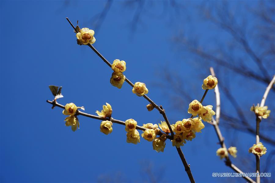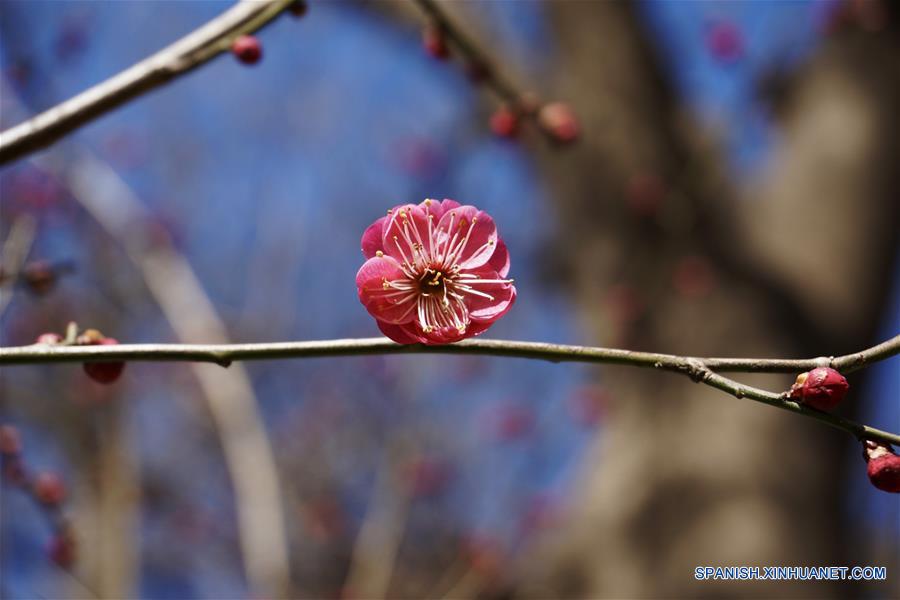 BEIJING, 7 marzo, 2019 (Xinhua) -- Vista de una flor en el Templo Wofo en el Jardín Botánico de Beijing, en el distrito de Haidian de Beijing, capital de China, el 7 de marzo de 2019. Algunas flores han entrado en temporada de floración mientras la temperatura aumenta a principios de primavera en Beijing. (Xinhua/Cui Bowen)