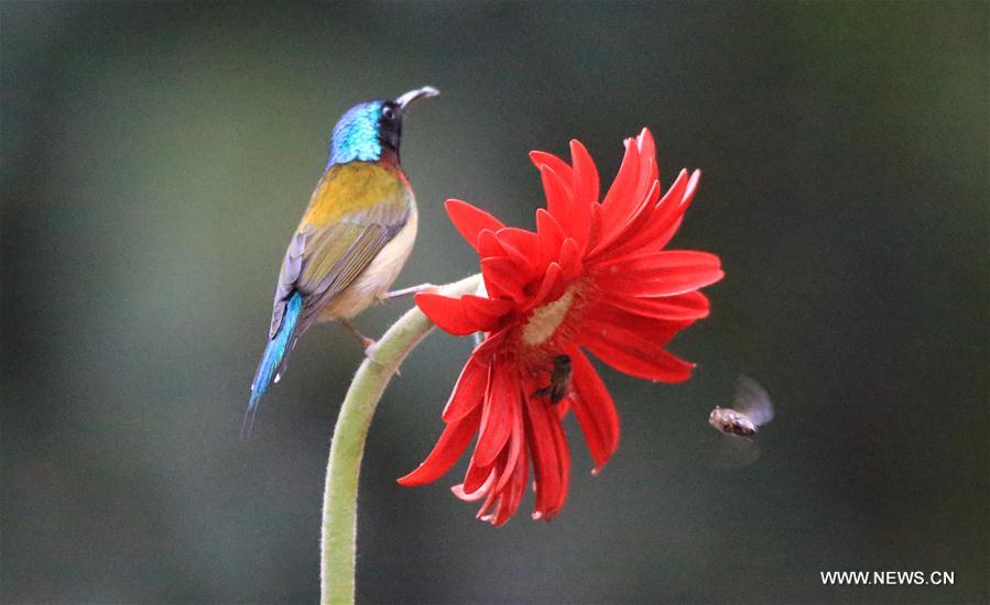 Un colibrí se prepara para libar una flor en la aldea Wuxing, Yanfeng, Hengyang, provincia de Hunan, el 6 de marzo del 2019. Este miércoles comenzó el Jingzhe, que en chino literalmente significa “el despertar de los insectos”. Jingzhe es el tercero de los 24 términos solares del calendario lunar chino. En este período la temperatura ascendente y la naturaleza se llena de vigor y vitalidad. (Foto: Cao Zhengping /Xinhua)